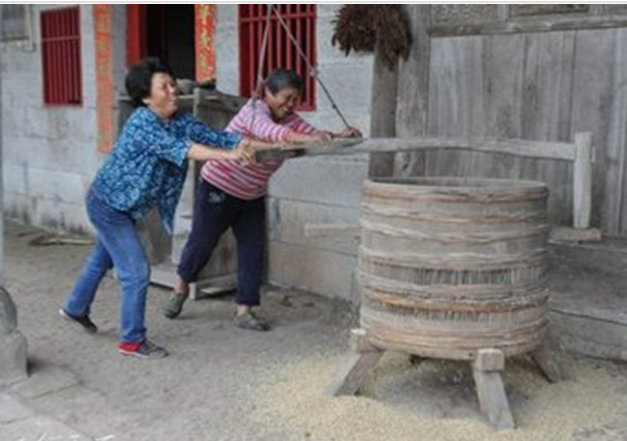 对于现在的年轻人来说,檑子、木碓和石磨,可能是些十分陌生的东西了,然而,檑子、木碓和石磨却是我们五六零年代人难忘的记忆。随着年岁的增长,那些远去的记忆似乎更加清晰起来,让人更加怀念起那自然而艰辛的日子。 上世纪七、八十年代,在岳西农村,绝大多数地方都没有通电,稻米和小麦的加工几乎都是靠檑子、木碓和石磨来完成的,用这些原始的器具加工出的大米和面粉没那么好吃,且要耗费大量的人力物力,舂出的大米还要用筛子筛糠,面粉还要筛箩筛粉,很是麻烦。 ![]() 岳西温泉民间收藏家王书良收藏的檑子 檑子檑稻:“檑子”,在碾米机没发明前,它是数千年来人们的生活必须品,没有它,人们只怕吃饭都难。它的功能,类似于大米加工机械里的砻谷机,专为剥稻壳所用。 “檑子”,它和“石磨”是同宗不同“性”的大米加工工具。高约一米左右,粗约小木盆,浑身圆形。它分上下两部分。上端较薄,形似磨盘,只是边缘隆起较高。下端形似磨座,但要厚很多。上端的中间有一个小圆孔,边缘有两只木柄象耳一样相对伸出,柄端也有小圆孔,是檑杆的预留孔。 制作檑子,其制作原料主要是木材和毛竹,原理上完全模仿“石磨”而制成。“檑子”的好坏关键靠“檑齿”,必须用檀木、桑木、栎树木等上好的“青杠”木材。先将“青杠”木棒劈为2毫米左右厚的木条备用。然后用其他木料制成上下两个无底无盖的“圆桶”,和“石磨”一样称为上下“两扇”,其中“下扇”的中间筑上黄泥粘土,“上扇”的中间留空,用以往下倒稻谷。接着就用“青杠”均匀地一块一块地卡,每两块之间用楠竹片隔着,让其形成“石磨”一般的“齿”。可以说,这“檑子”就是巨型的“木磨”而已。“檑子”的制作是非常讲究技术的,据传说至少要是三年以上的老师傅制作的“檑子”才好使,一般的木工师傅还不能胜任。 使用时,先将上下两片合在一起,如同石磨一般,楔套得天衣无缝。然后。把需要脱壳的稻谷,倒在上面,如推磨一般,将檑子推动起来,脱壳的稻谷便纷纷往下掉落,壳与谷米则从垒子周围的木片缝隙中纷纷掉下,再用器具盛装起,倒入风车中用手摇动风车叶片,叶片一转动,风乍起,吹开轻飘的粗壳后,余下的便是大米。这种米,远不如今天所吃的大米,它仅脱去了外壳,表皮显得尤为粗糙,颜色黝黄或黑黑,讲究的须得用碓再加工一番,方可入得口去。然而这糙米更合乎人的养生之道。因为这糙米外面附带着的那些个米糠,按照科学的道理,该然不知附带着好些的维生素A,B,c,d,e……呢!可惜那时的人不懂科学,老觉得这米外表粗糙,颜色黝黑,不如精米的味道好嘛且又养人,硬生生将米皮给去掉。 檑子脱下的糠称为老糠,是成片的稻壳,过去人将它做枕头芯。记得老人说,上个世纪三年大饥荒时,许多人都将枕头的老糠拿出来磨着吃,好多人因吃老糠拉不下大便被活活撑死。用檑子檑米大多是四十年前的事了,因为檑子加工的米不浪费粮食,出米率高,所以在缺衣少食的年代,人们只求饱不求好了。 木碓舂米:木碓相对于檑子,加工的稻米更胜一筹。木碓是由石支撑架、木碓杆、石碓和石臼几部分组成,石碓和石臼用的是同一种石材,石舂连在原木上,由一至两人协力踩踏,有节奏的起落,一人手拿小扫帚,随着石舂的升起快速拨动石盆里的粮食。 制作木碓是一件技术活,碓窝通常用石头打造。制作碓窝需要专门的石匠,一个对窝十几块钱。石匠要选上好的石料,开凿出毛石,然后用錾子一凿一凿地凿空,大约凿了十多天时间,才能凿出一个碓窝。然后抬回来。砍来木料,请木匠花两三天时间,做好支架,一个简易的木碓就这样做好了。过去一个大的村庄,都有好多处木碓,一般就是在正屋边做个窝棚,里面装上碓。 舂米是一件费时费力的事情,小时候,我最怕的是舂米,我们家人多,一般三四天就要舂一次米。天不亮,母亲就把我们弟兄几个叫起来,点上煤油灯火,挑着一担稻谷到碓房里,然后便开始舂米了,我们弟兄几个舂米,母亲在下面用筛子筛米,到吃早饭时一担稻谷就舂好了。这时,我们累得腿都迈不开了。 那时,在我们村庄,有个叫程节才的,在自家前面的小河边选了一处合适的位置,用茅草盖起了一间小窝棚,然后仿照椴木粉的水碓自制了一个小水碓安装在小窝棚里。水碓的原理是在碓的脚踏板处做一个大大的水槽,用竹子把水引到水槽里,利用水的重量把碓头抬起来,水随之倒出,碓就舂一下米。用水碓舂米没有人工快,但可以节省人力。后来我们也把稻子挑到他家的水碓中去舂,到第二天才去取米,每百斤收四毛钱加工费,米挑回家后,用簸箕簸去谷糠,就可煮吃了。这以后,我们没有舂过米,都是用水碓舂米。青黄不接的时候,大麦是救命的食粮,大麦舂出的米煮出的饭,我们家叫“麦米饭”,可是特难下咽的,但总比吃野菜粑粑要好。 再后来,村里通了电,父亲给家里买了一台小型碾米机,从此,木碓和水碓也悄悄退出了历史舞台,从人们的视线里慢慢消失。 石磨磨粉:石磨是用人力把把米、麦、豆等粮食加工成粉、浆的一种石制工具。通常由两个圆石做成。由两块尺寸相同的短圆柱形石块和磨盘构成。一般是架在石头或土坯等搭成的台子上,接面粉用的石或木制的磨盘上摞着磨的下扇(不动盘)和上扇(转动盘)。两扇磨的接触面上都錾有排列整齐的磨齿,用以磨碎粮食。上扇有两个(小磨一个)磨眼,供漏